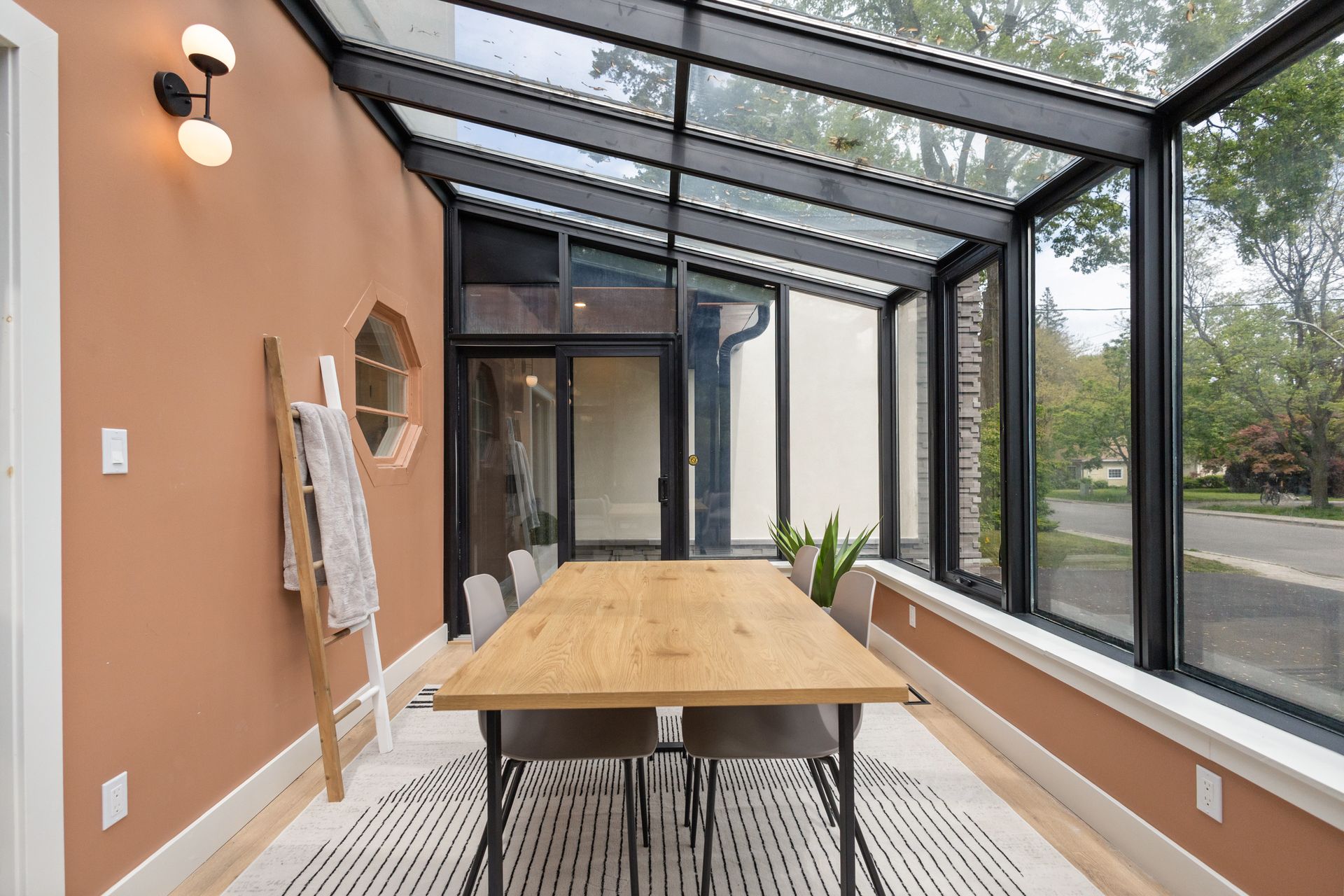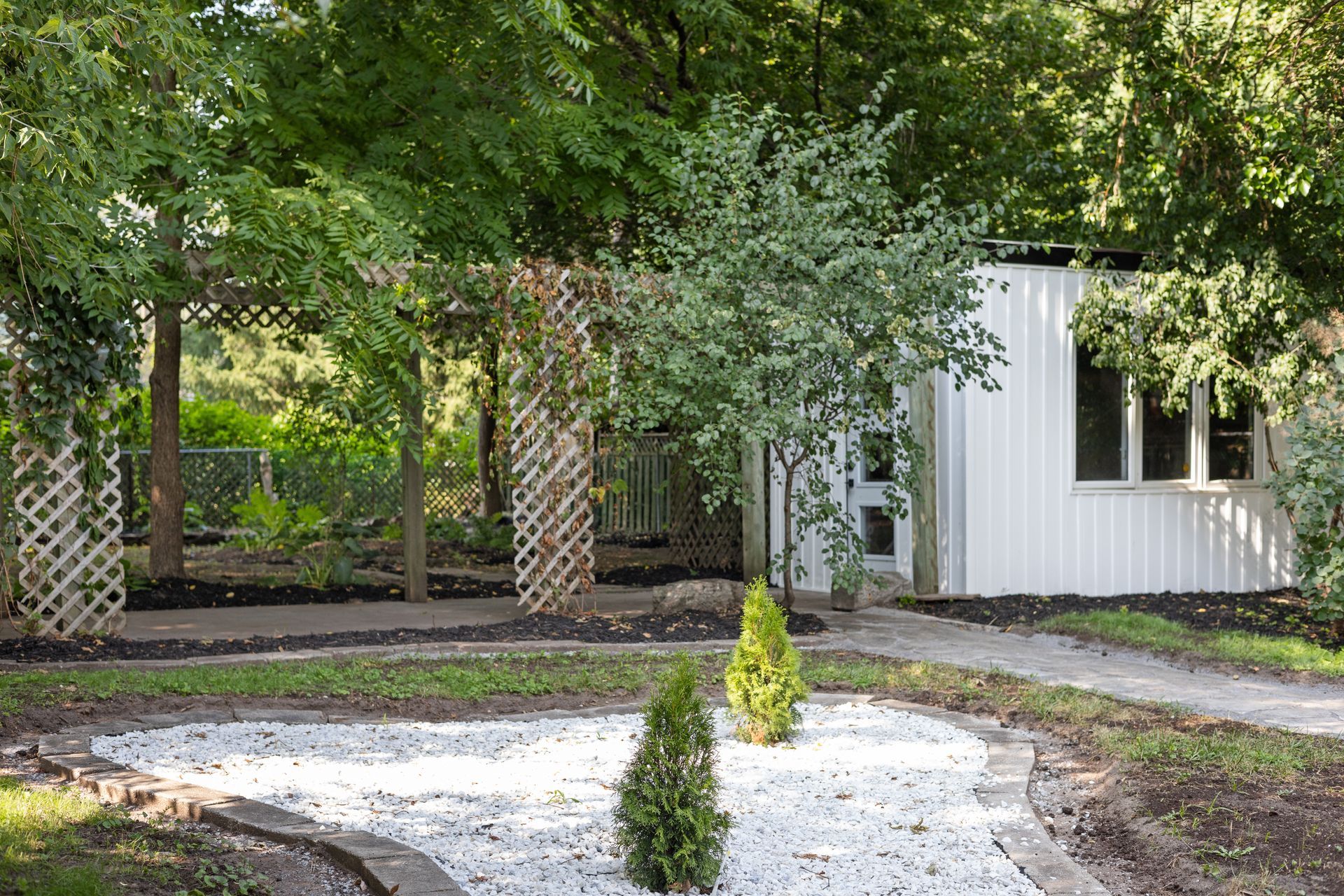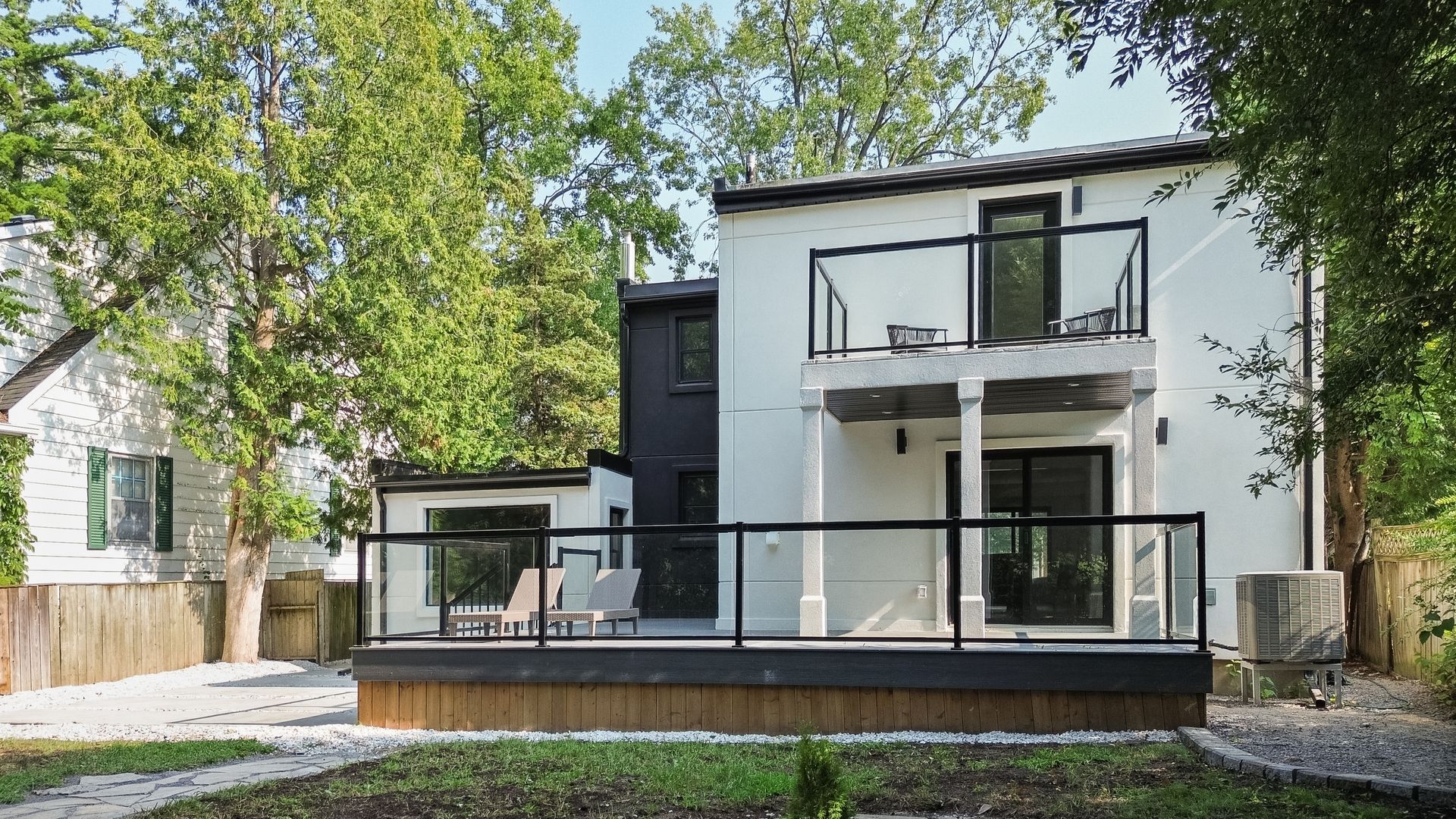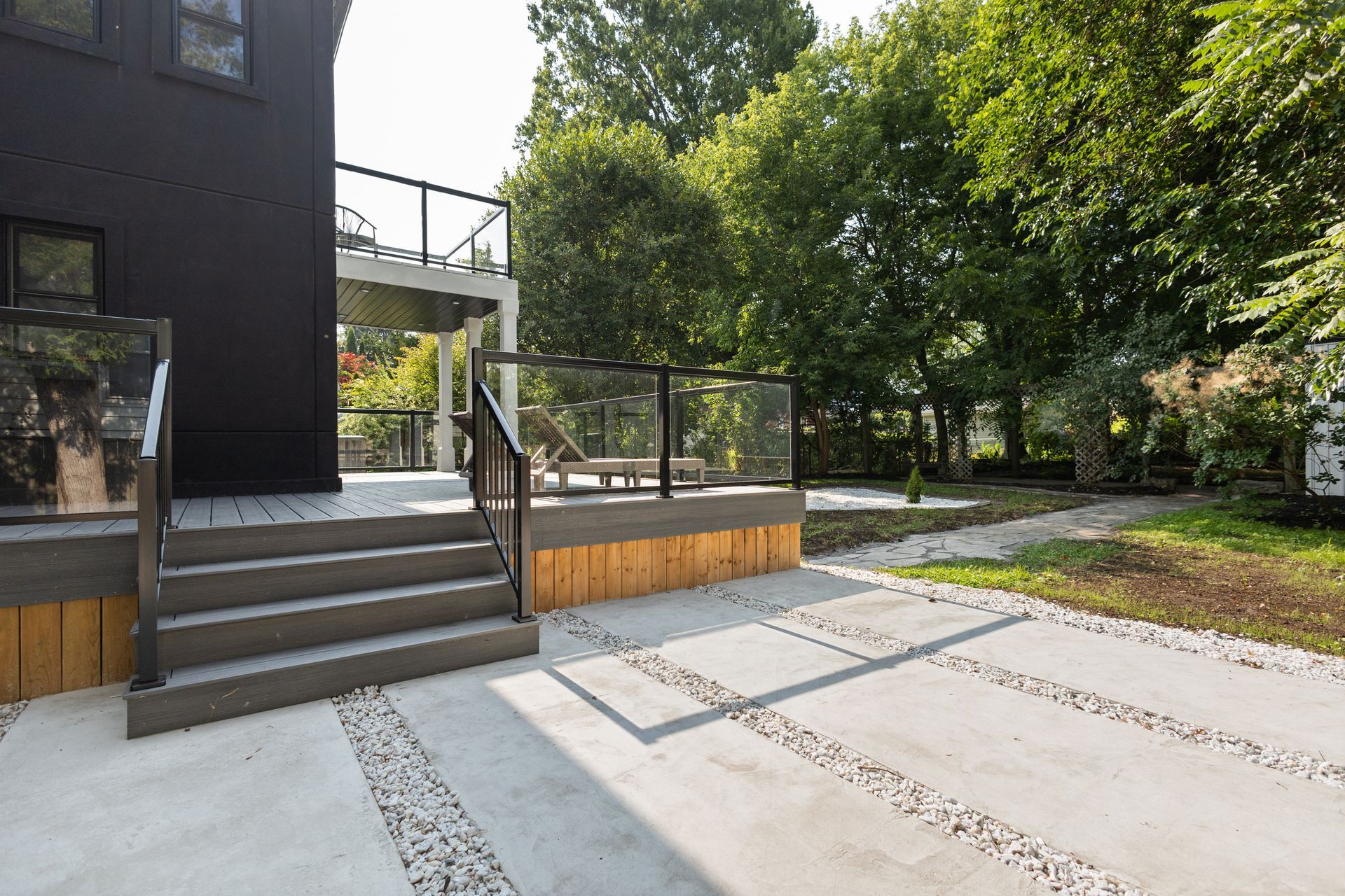 Stunning modern architectural home in the heart of Old East Hill, set on a private 175+ ft lot. Completely reimagined and thoughtfully renovated, this one-of-a-kind residence offers 3 bedrooms, 3.5 bathrooms, and multiple spaces designed for everyday living and entertaining. The striking stone and stucco exterior, attached garage, covered porch, and solarium create a bold first impression. Inside, the spacious kitchen steps down to a sunken living room with exposed beams, a gas fireplace, and oversized rear-facing windows that bring the outdoors in. A 2-piece bath and convenient laundry area are tucked away en route to the open-concept living and dining area featuring modern lighting, a second gas fireplace, a wet bar, and access to the expansive composite deck with glass railings. Upstairs, all three bedrooms are paired with full bathrooms for ultimate convenience. The primary suite includes a walk-in closet, feature wall with sconce lighting, and a walkout to a private terrace overlooking the park-like backyard. Additional outdoor highlights include a lower-level concrete patio and steps wrapping around the east side. Situated in one of Belleville’s most sought-after neighbourhoods, this home stands out for its design, finishes, and exceptional setting.