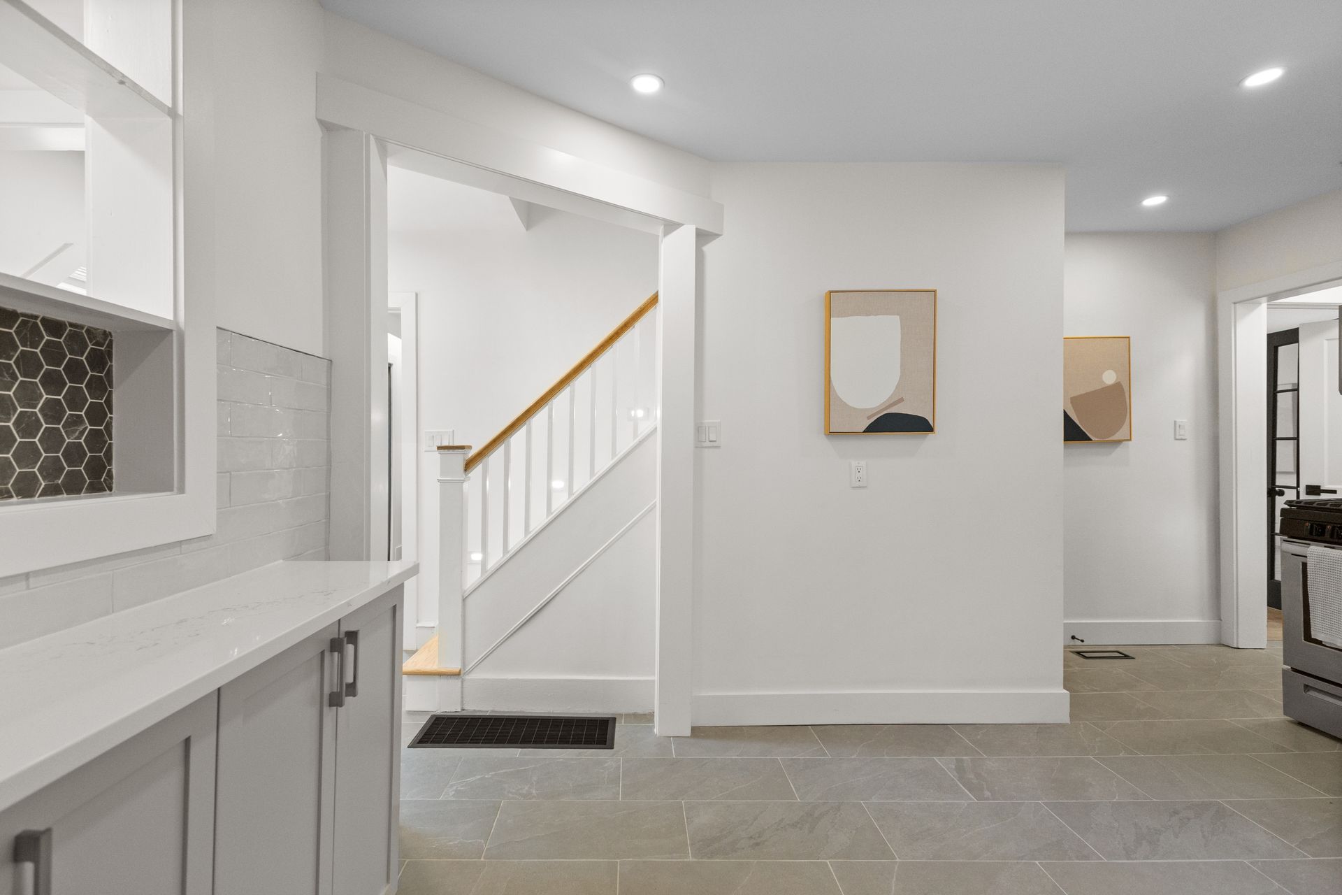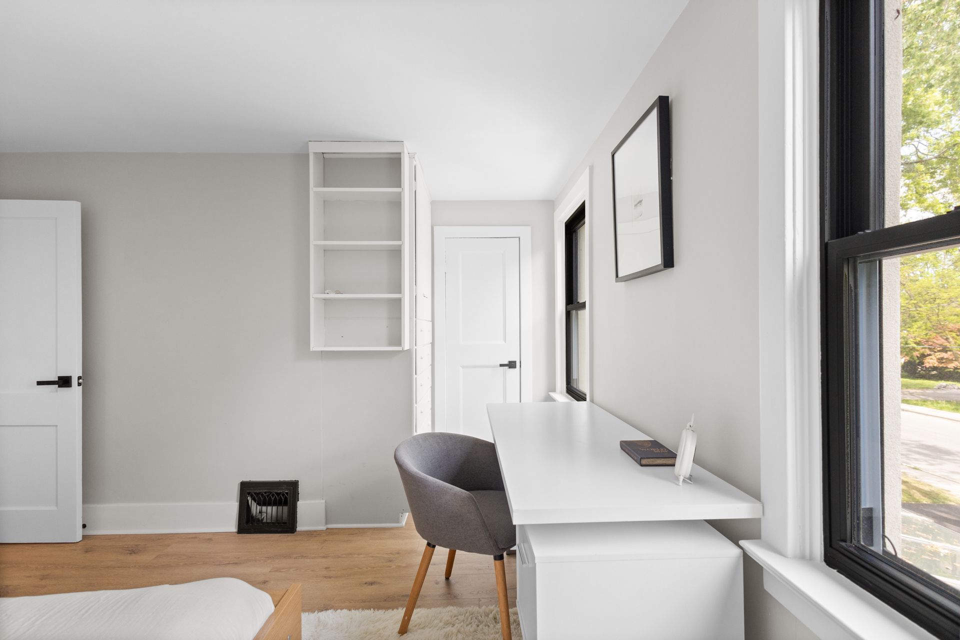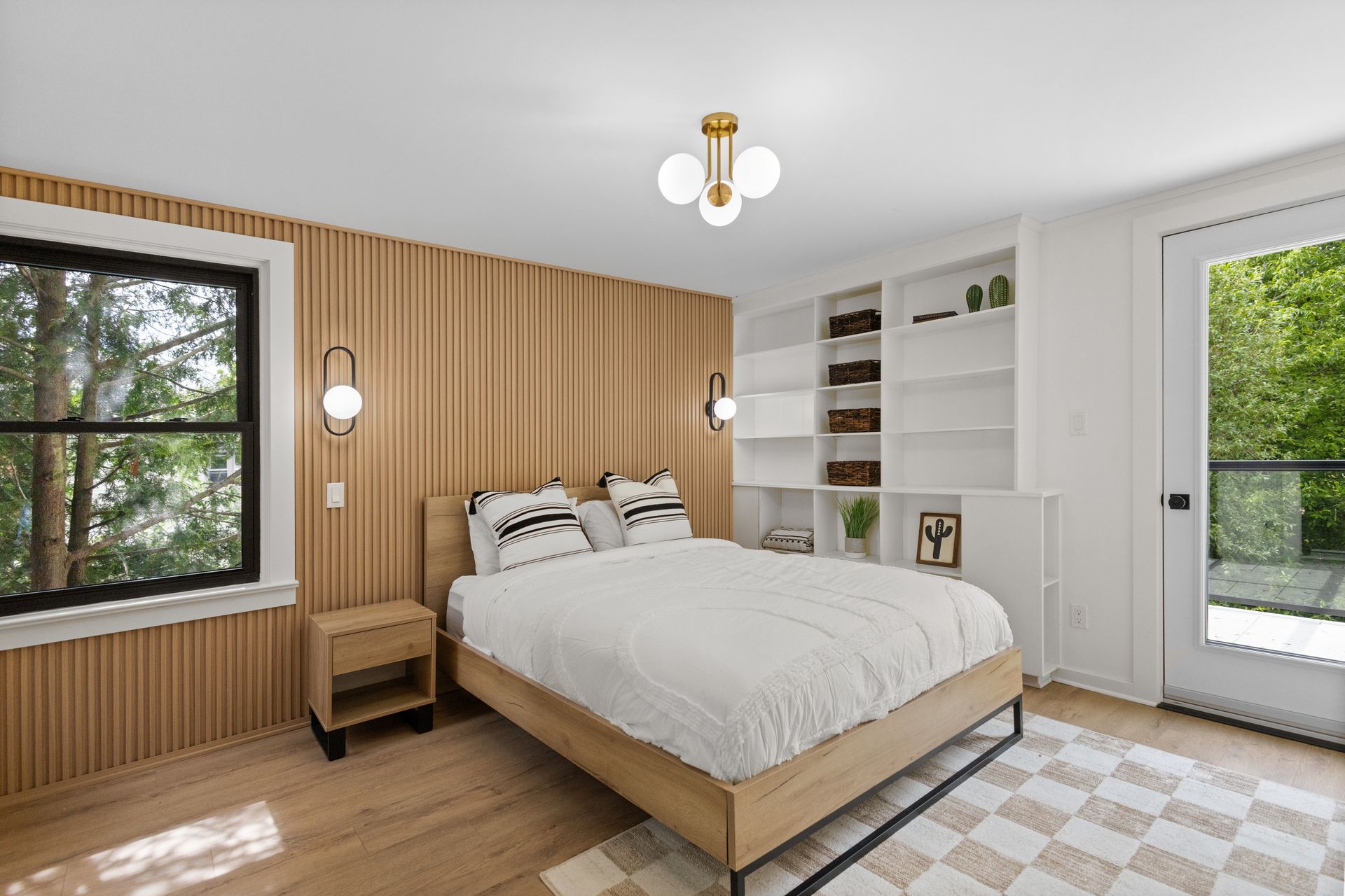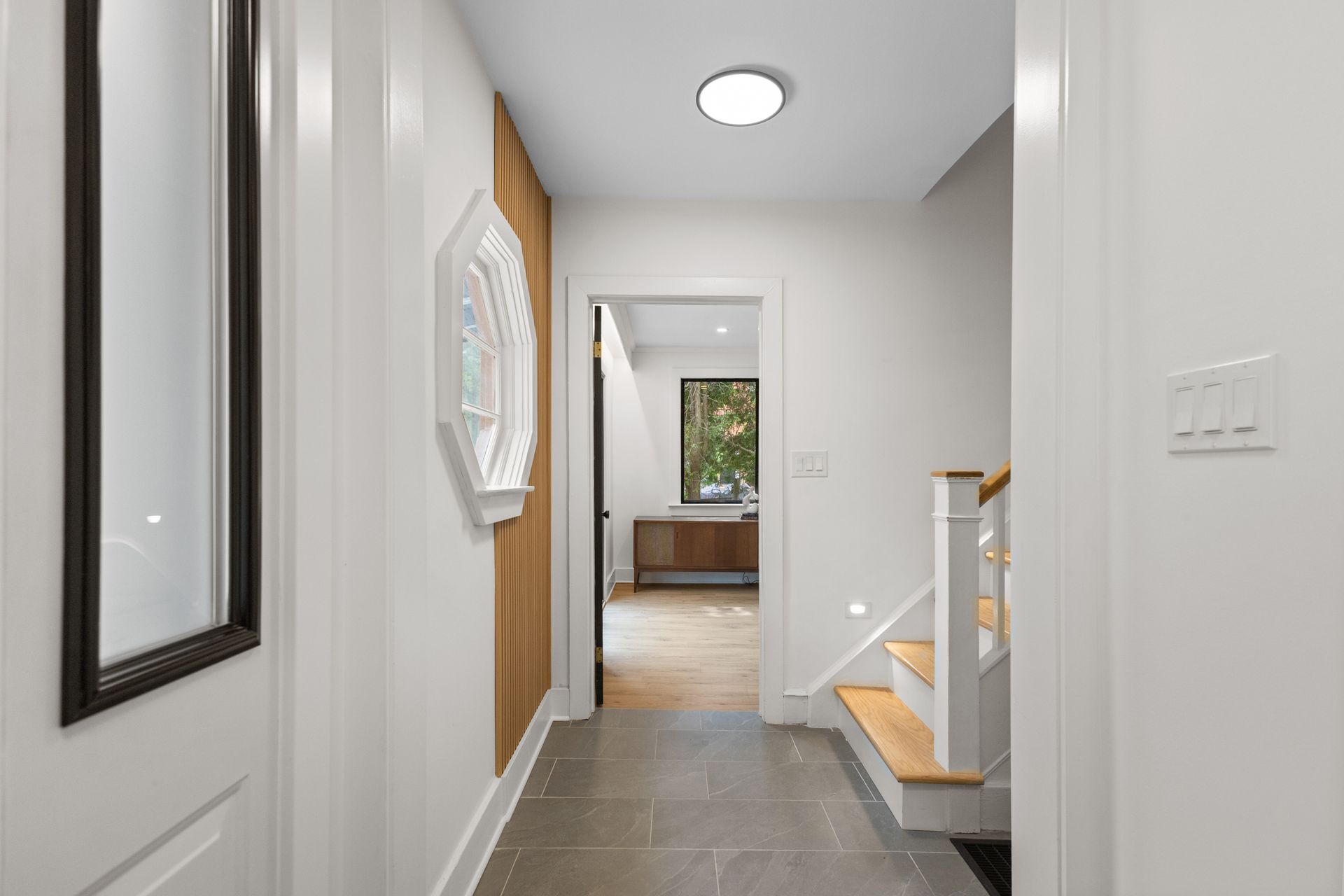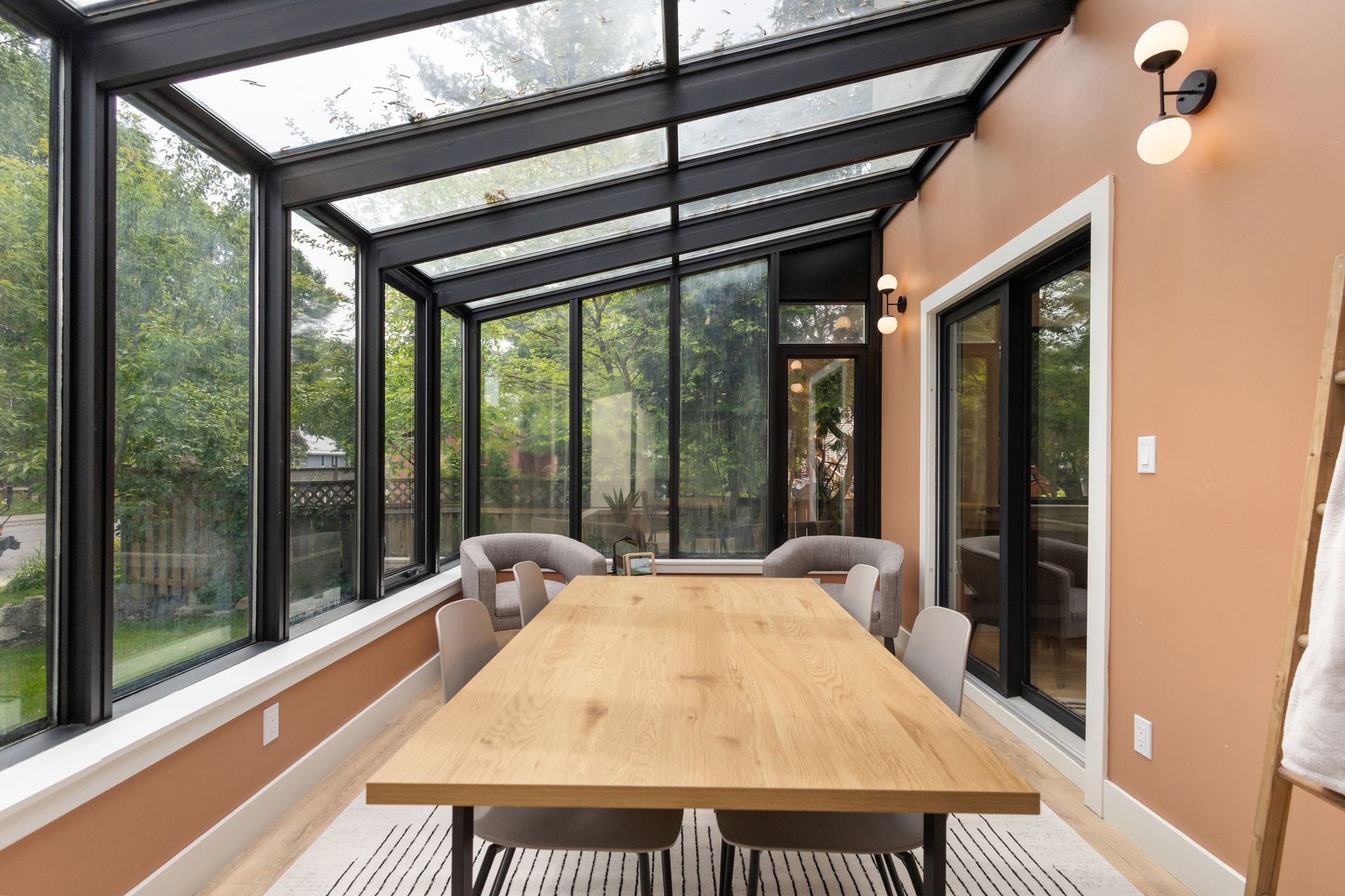 Stunning modern architectural home in the heart of Old East Hill, set on a private 175+ ft lot. Completely reimagined and thoughtfully renovated, this one-of-a-kind residence offers 3 bedrooms, 3.5 bathrooms, and multiple spaces designed for everyday living and entertaining. The striking stone and stucco exterior, attached garage, covered porch, and solarium create a bold first impression. Inside, the spacious kitchen steps down to a sunken living room with exposed beams, a gas fireplace, and oversized rear-facing windows that bring the outdoors in. A 2-piece bath and convenient laundry area are tucked away en route to the open-concept living and dining area featuring modern lighting, a second gas fireplace, a wet bar, and access to the expansive composite deck with glass railings. Upstairs, all three bedrooms are paired with full bathrooms for ultimate convenience. The primary suite includes a walk-in closet, feature wall with sconce lighting, and a walkout to a private terrace overlooking the park-like backyard. Additional outdoor highlights include a lower-level concrete patio and steps wrapping around the east side. Situated in one of Belleville’s most sought-after neighbourhoods, this home stands out for its design, finishes, and exceptional setting.